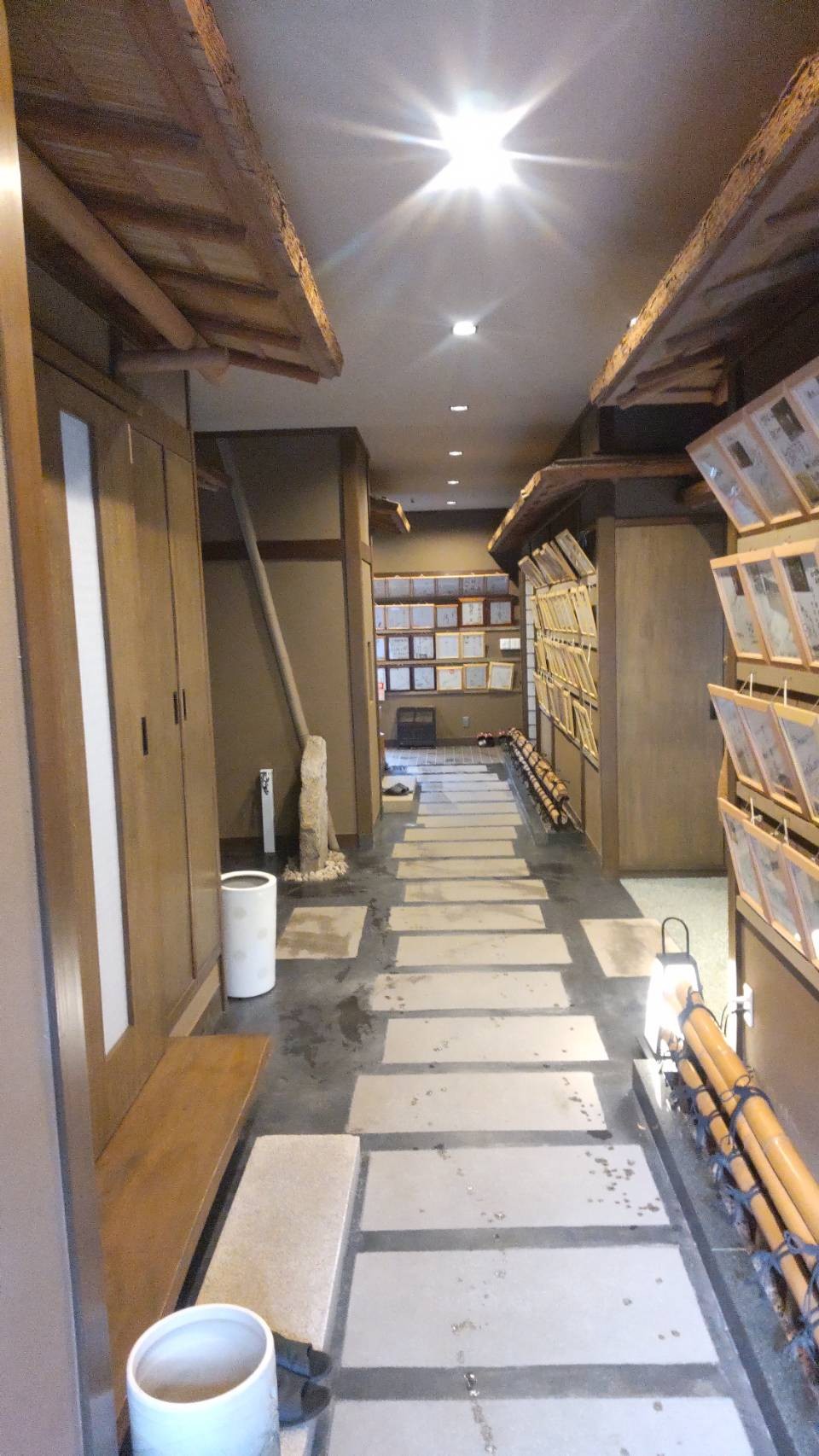 この長い通路を抜けると個室のお部屋に案内されます。多くの有名人が訪れているようです。