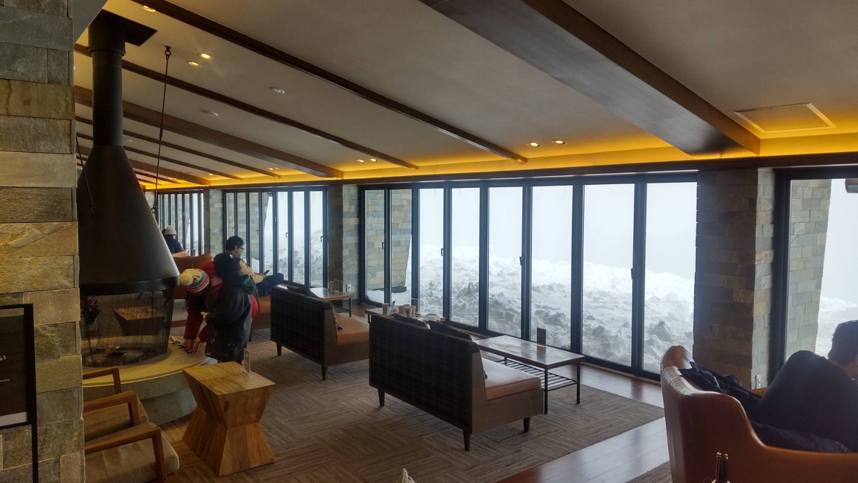 室内は暖炉があり暖かいのですが、あいにくガスが出てしまい景色は残念な結果に。