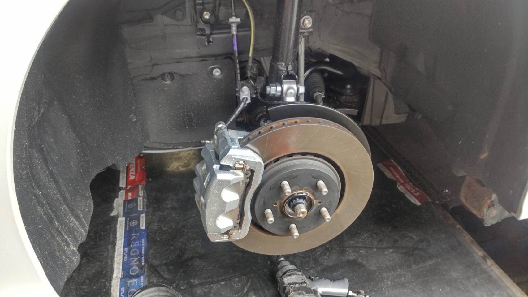 純正品の乗り心地が少し不満とのことで交換していただきました。キャリパーもきれいです。