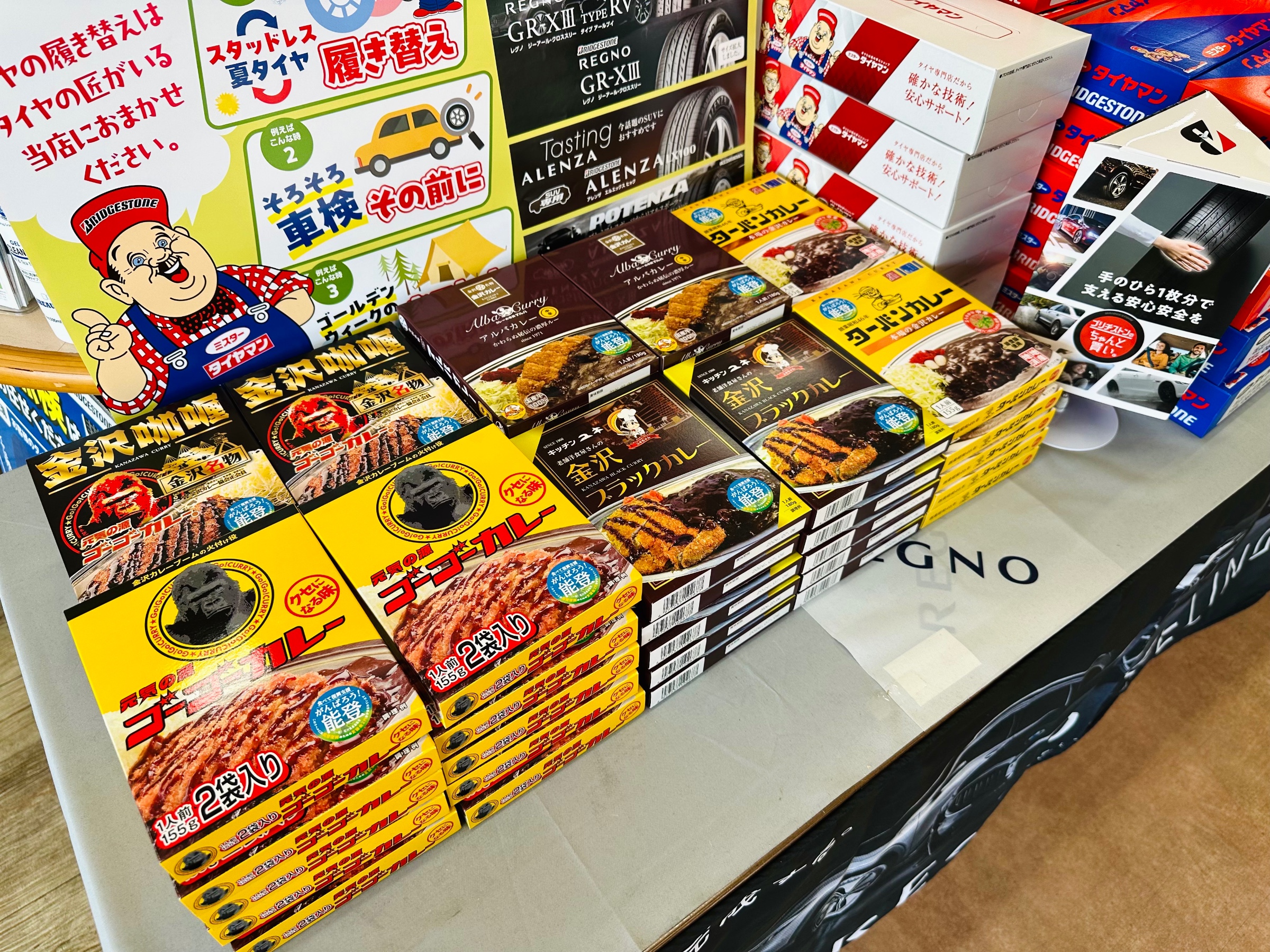 ブリヂストン製 新品のタイヤ or ホイールを4本購入されたお客様にカレーを1箱プレゼント中!!