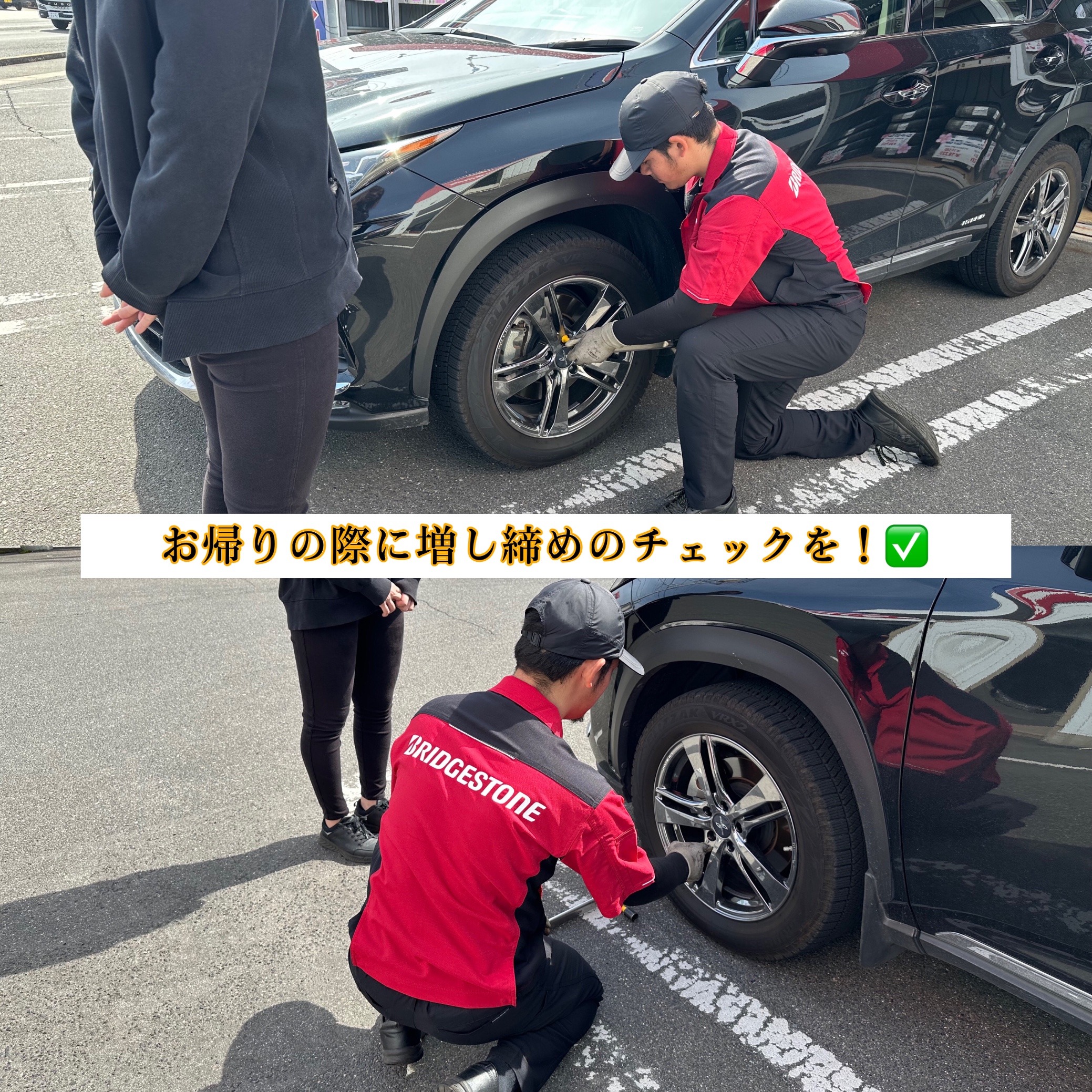 そしてお客様がお帰りの際、一緒に増し締めのチェックをしているのも当店の強みです◎