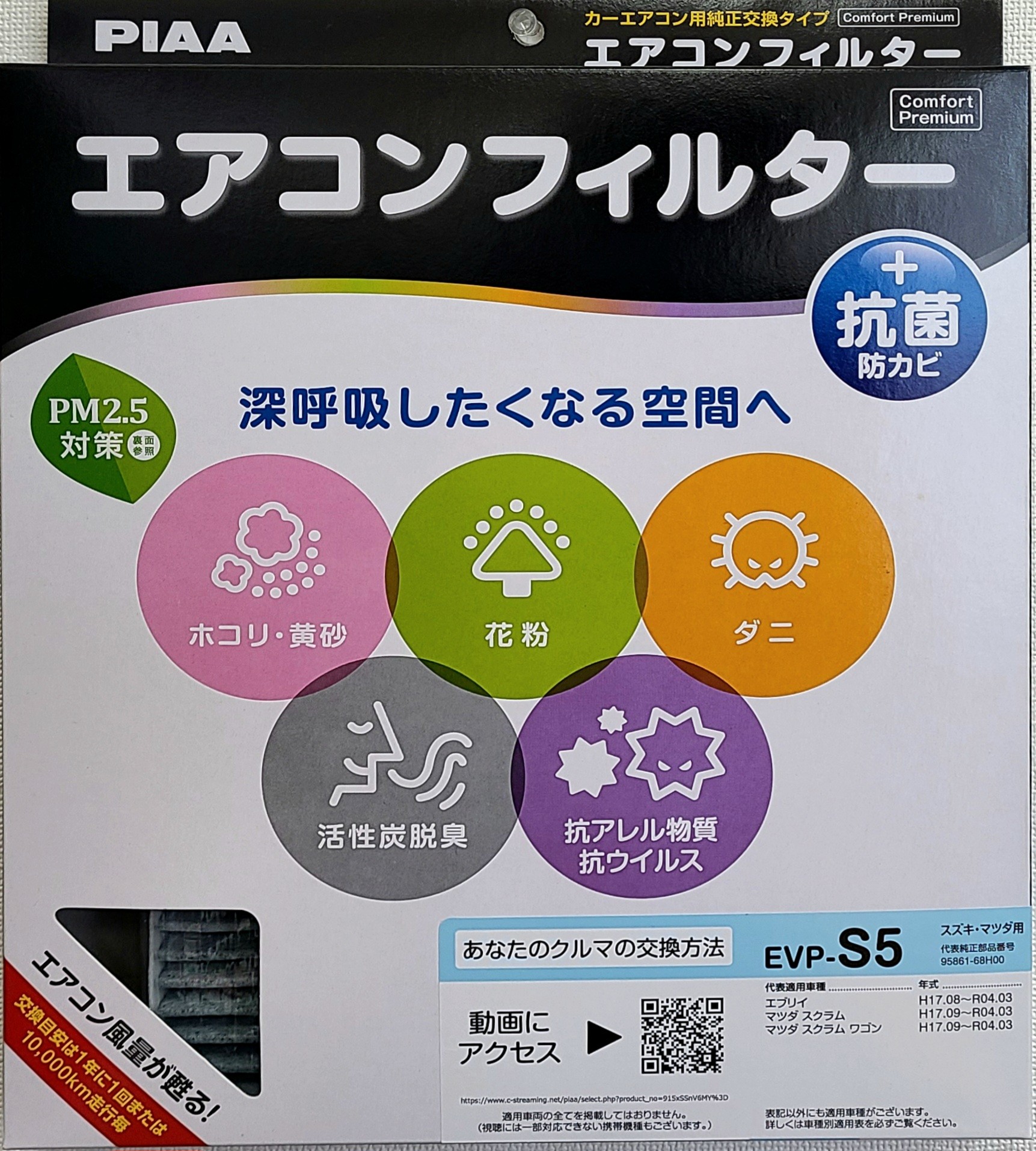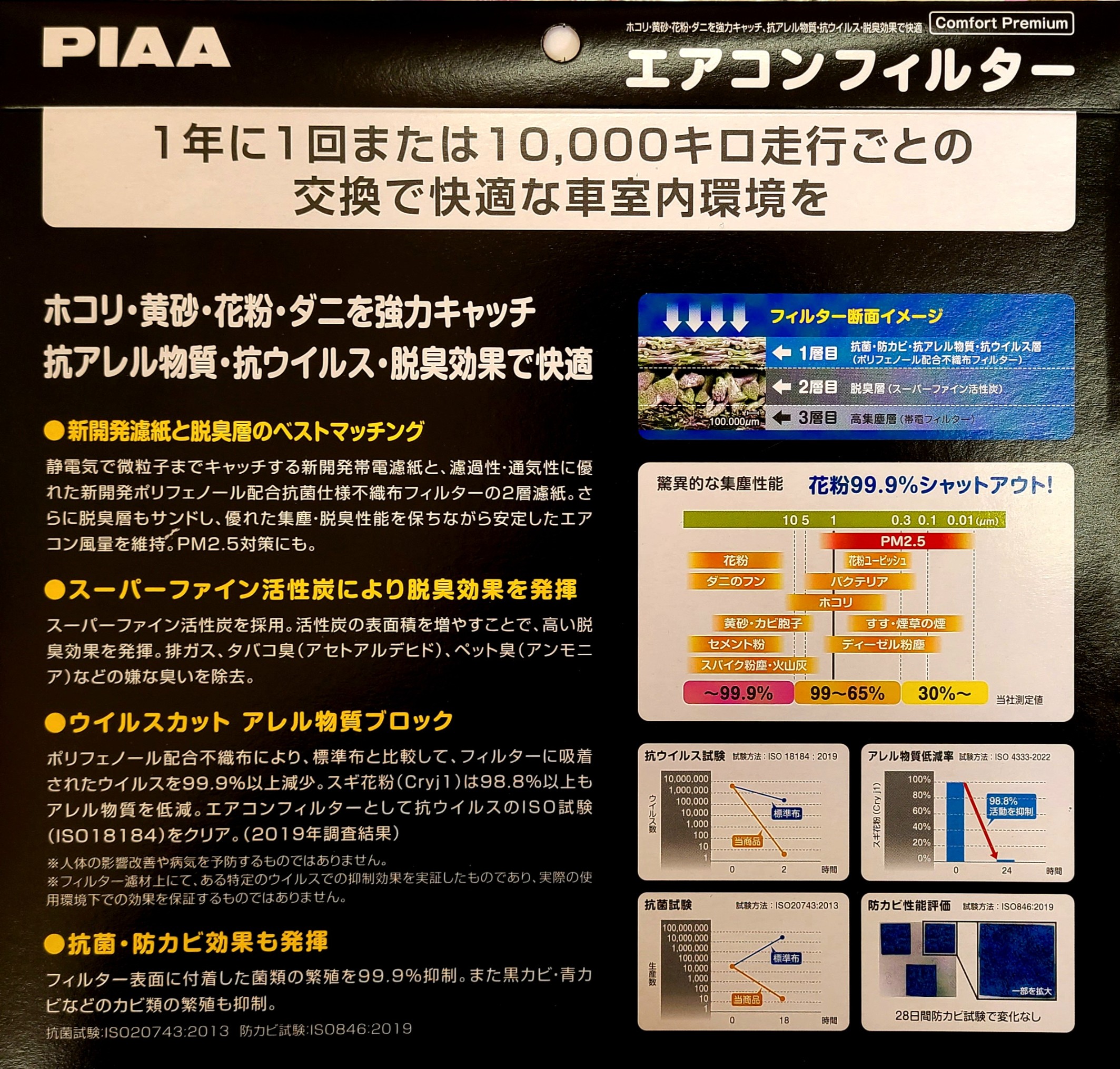 〇対応車種 ・国産車 〇交換目安 ・12ヵ月または1万km 〇ポイント ・ホコリ・黄砂・花粉・ダニを協力キャッチ 抗アレル物質・抗ウイルス・脱臭効果で快適