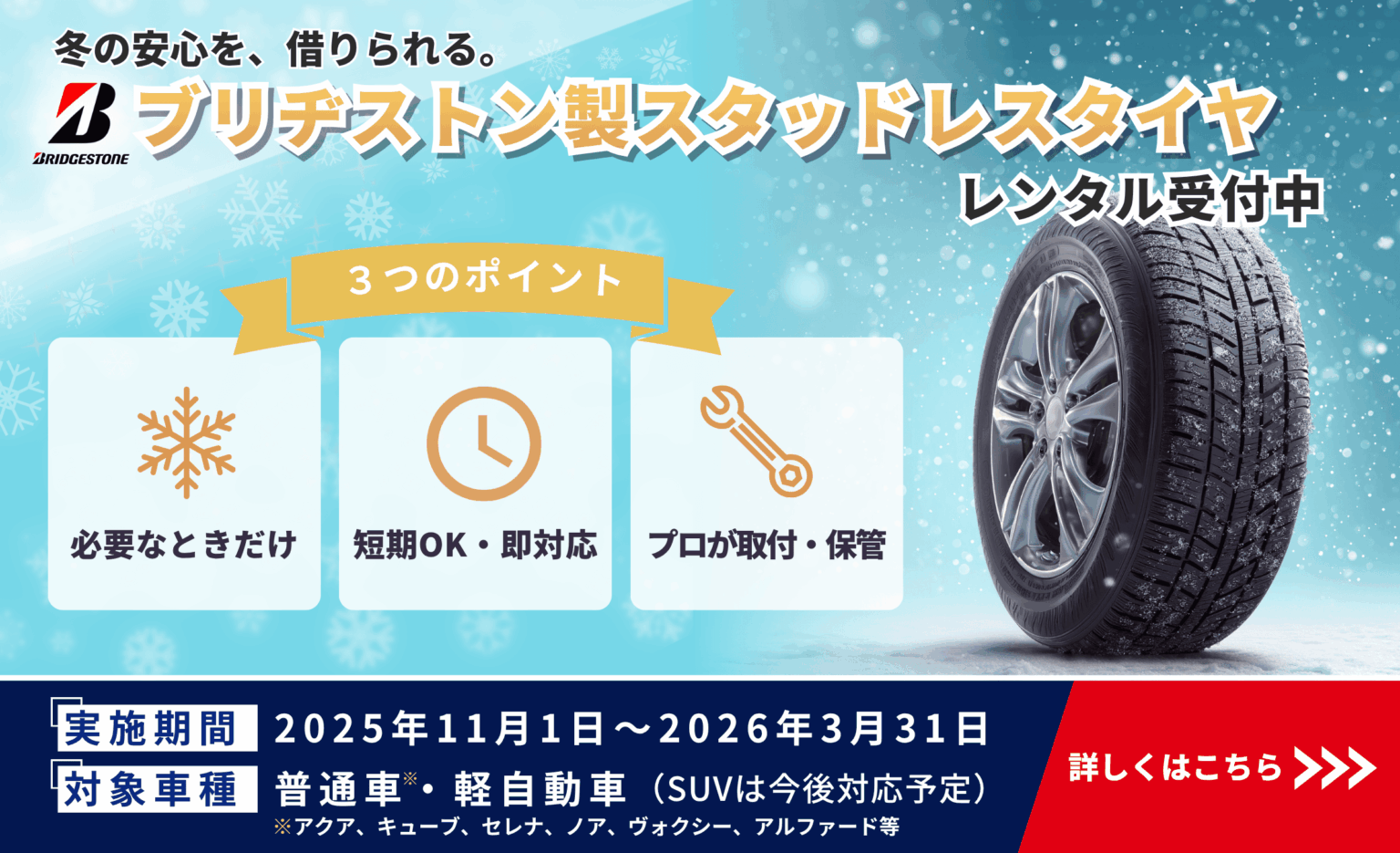 スタッドレスタイヤのレンタルを開始しました。