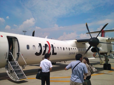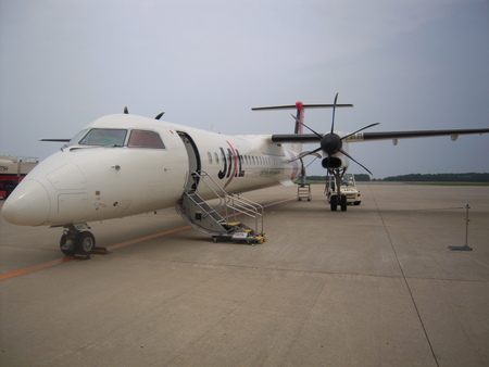 僕の人生初のプロペラ機!なんーか不安でーす。なんで遅れたんヤロー(-_-;)