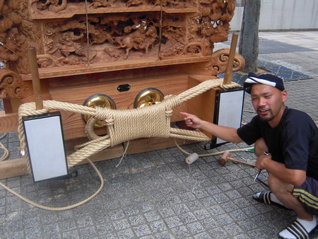 午前9時ごろよりだんじりを庫から出して、かげで風通しの涼しい場所に移動して