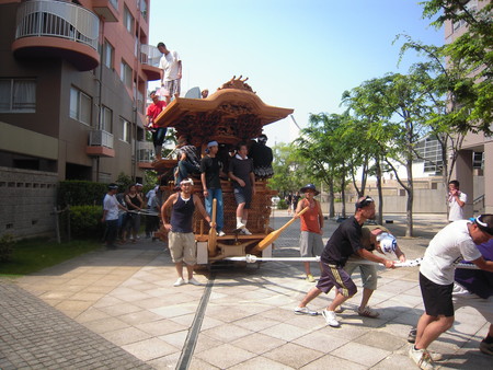 鳴り物を叩いて一年ぶりのだんじり曳行です。