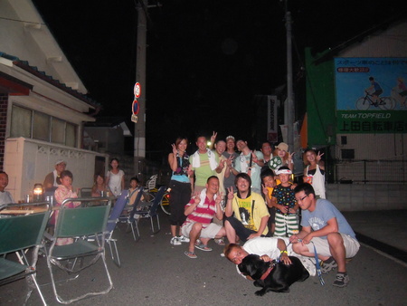 焼き肉やキムチなどを食べもって、通る仲之町メンバーも集まって