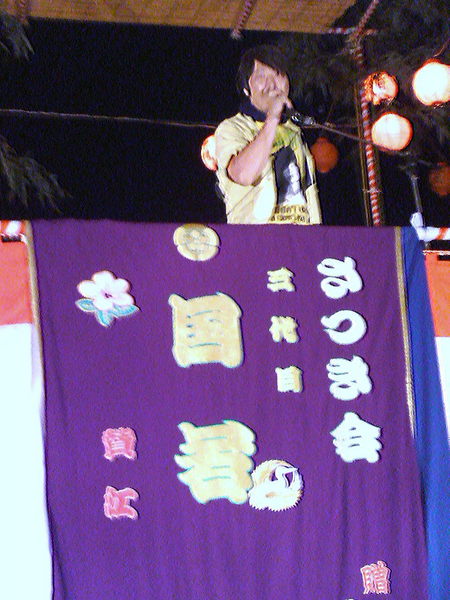 終わっている盆踊りのやぐらに勝手にのって記念撮影!