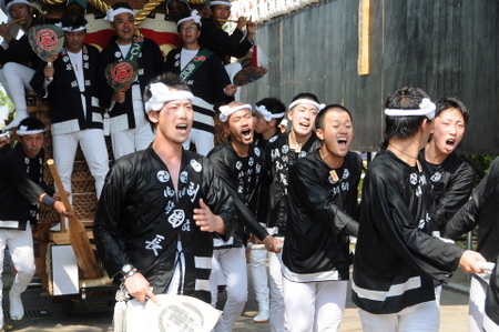 青年團の曳き手や参拾人組の後梃子もたいへんそう!