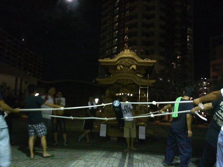 そして、だんじり庫に行ってみると後梃子の練習とミーティング