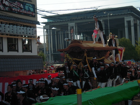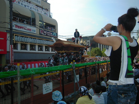 昨日の晩から場所取りをして、カンカン場でのだんじり見物です。