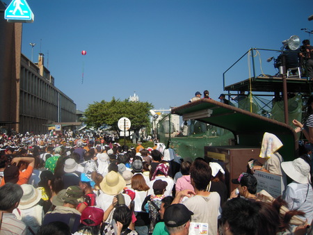 次々と5分~10分間隔くらいで坂を各町のだんじりが上がって来ます。