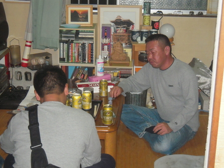 恭ちゃんと西口君とで一緒に帰ってきて僕ん家で軽く呑んで、祭話して