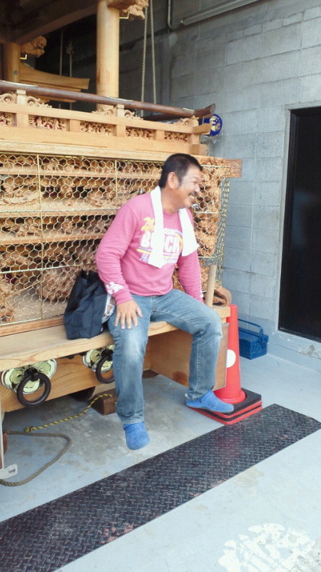 かんろくタップリでだんじりの前に座ってます。