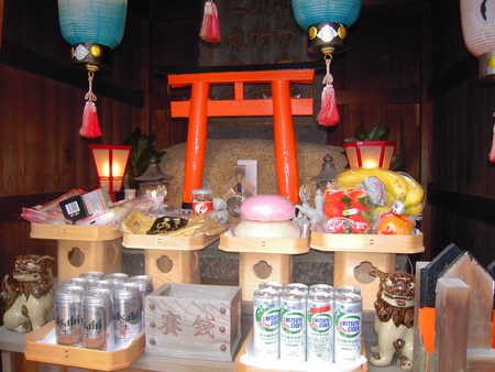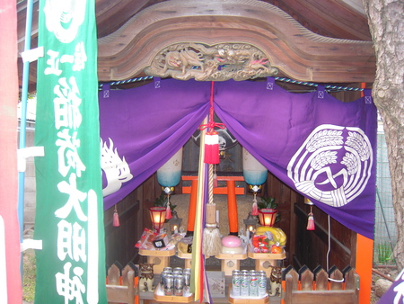 朝早く起きて当家のお稲荷さんに乾物・果物・酒・おあげさん・お餅などを