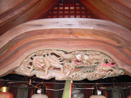 この懸魚の彫物はまだまだ荒いですが、虎の足元にある竹の葉の彫りと土盛り、龍の体の部分の彫りのタッチは何気に四天王寺さんにある寅之門の彫物の感じに似ていると思います。