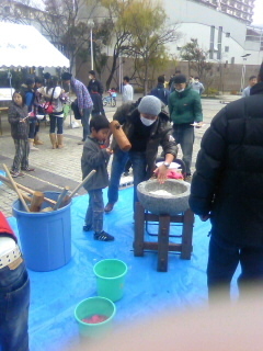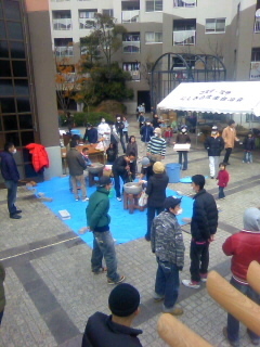 自治会の方からぜんざいをふるまってもらって温まるー。