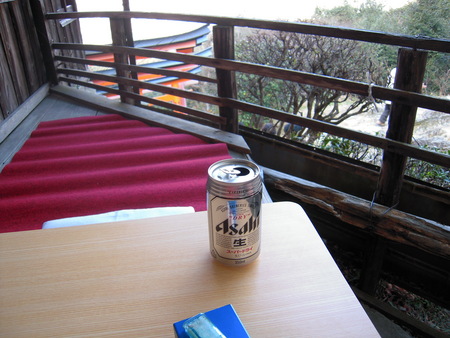 そして、お山の中腹四ツ辻で初ビール