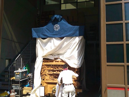 今日は、貝塚二色の地車の修理の立ち合いです。