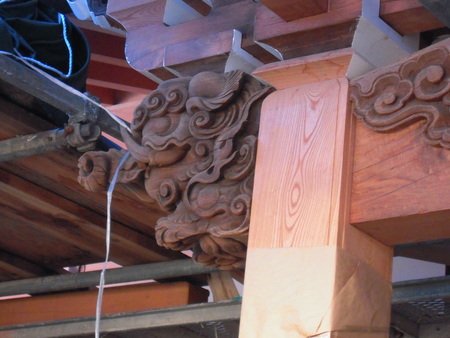 息子さんに説明していただき、改修中の本堂を見学!