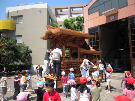今日は、二色小学校の2年生の児童が授業のいっかんとしての二色地車を見学会です。
