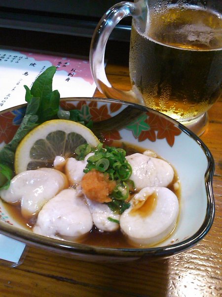 本日おすすめの「白子ポン酢」をいただきながらマスターと