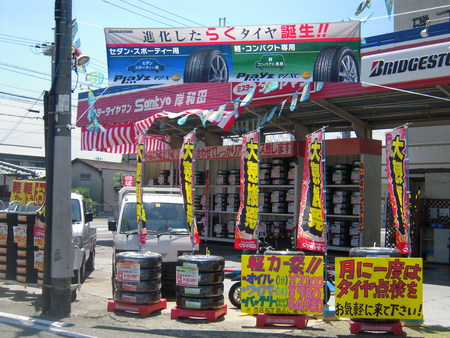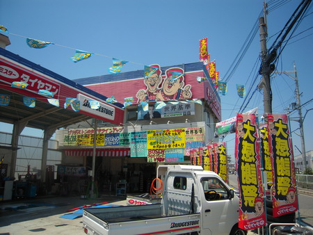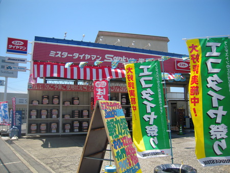 ミスタータイヤマンSankyo岸和田恒例夏の大感謝祭の準備をするのに絶好な天気です。