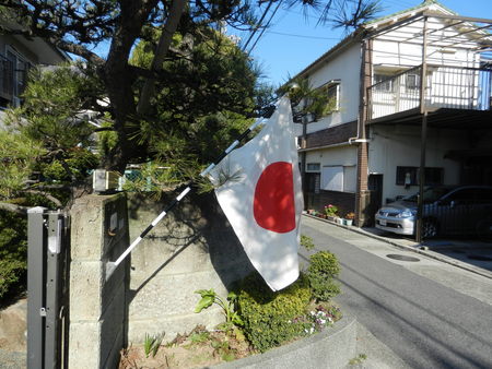 今日は、朝から国旗を門に!