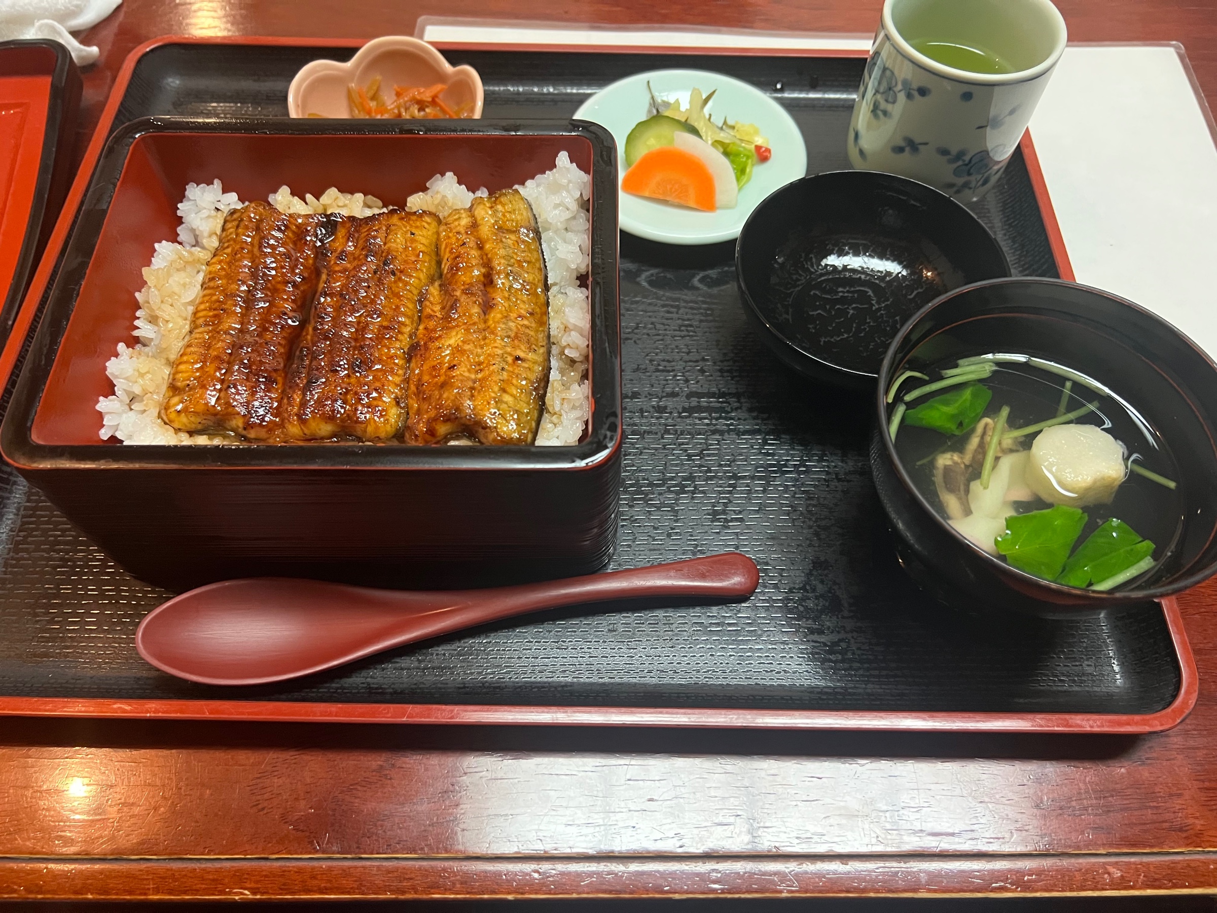 続いて「うな重」。ふっくらとした身にしっかり染み込んだタレ、そして炊き立てのご飯との相性は抜群。肝吸いや漬物も添えられ、最後まで飽きることなく楽しめる一品でした。ゴルフで体を動かした後のご褒美として、最高の食事でした。