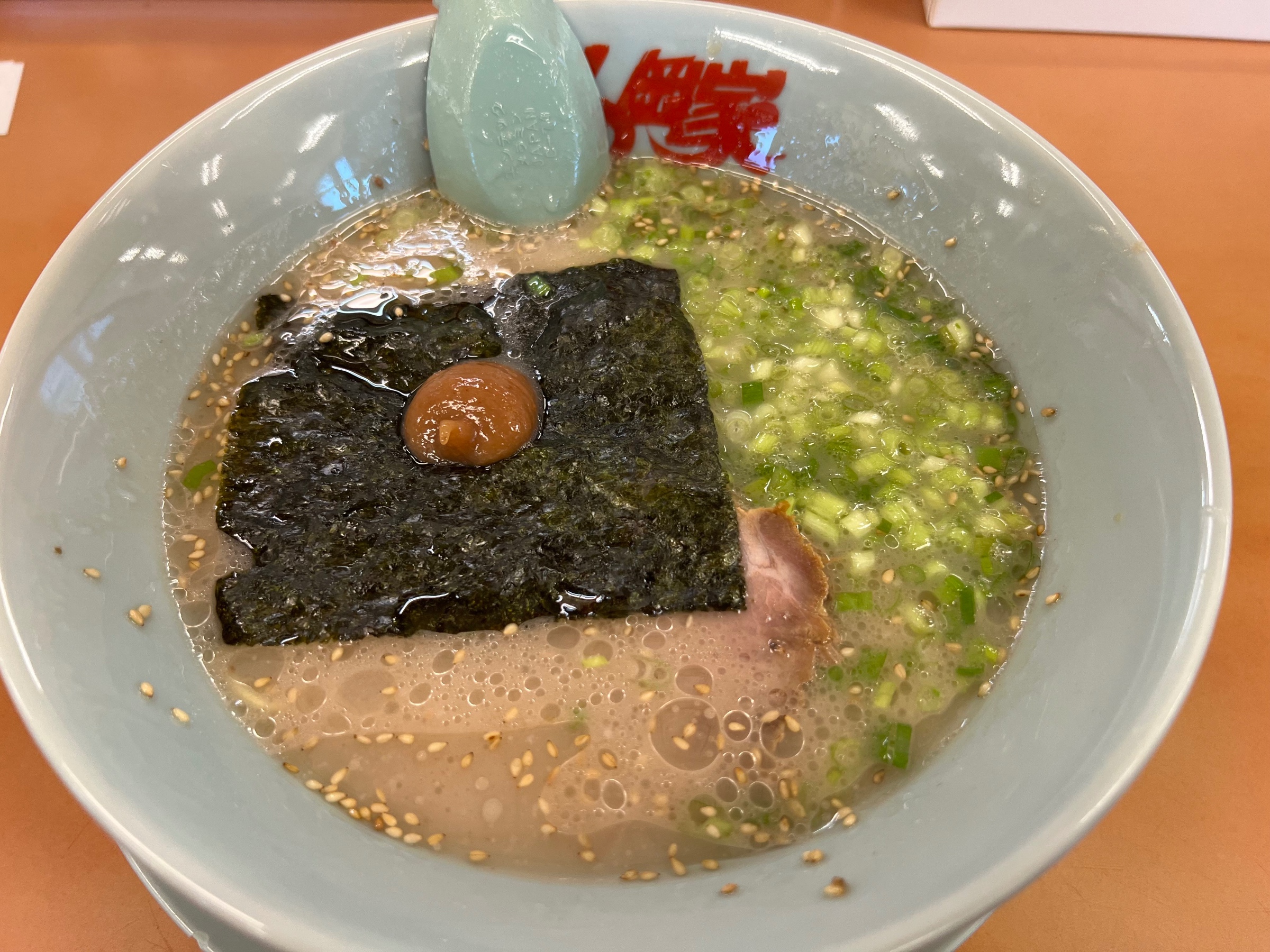 今回注文したのは、定番の醤油豚骨ラーメン。濃厚なスープに海苔と梅干しがアクセントになり、朝でも食べやすい味わいでした。さらに替え玉も追加して、しっかり満足。朝からしっかり食べると一日が元気にスタートできますね。