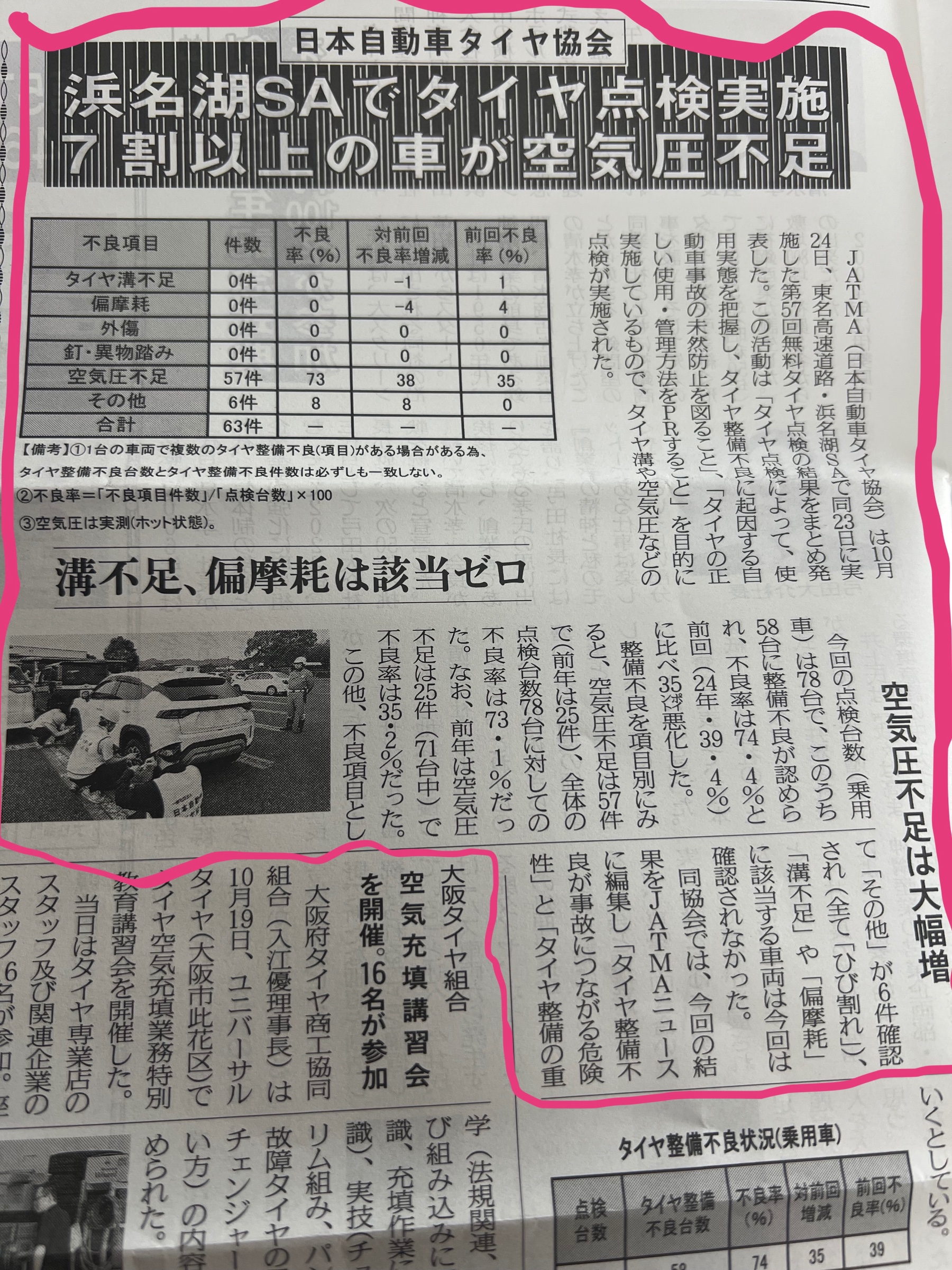 浜名湖サービスエリアで実施された点検では、なんと7割以上の車が空気圧不足だったそうです。
