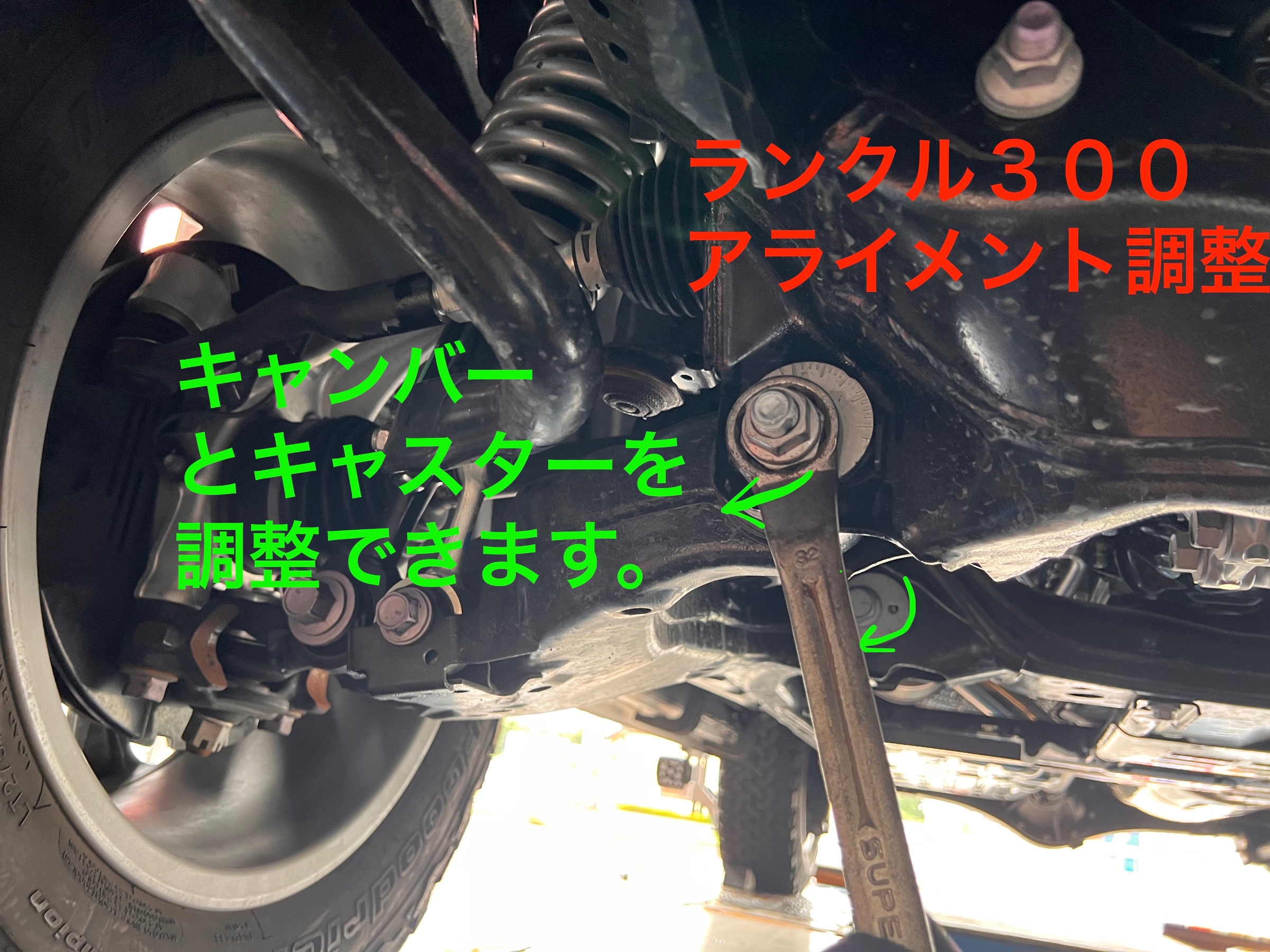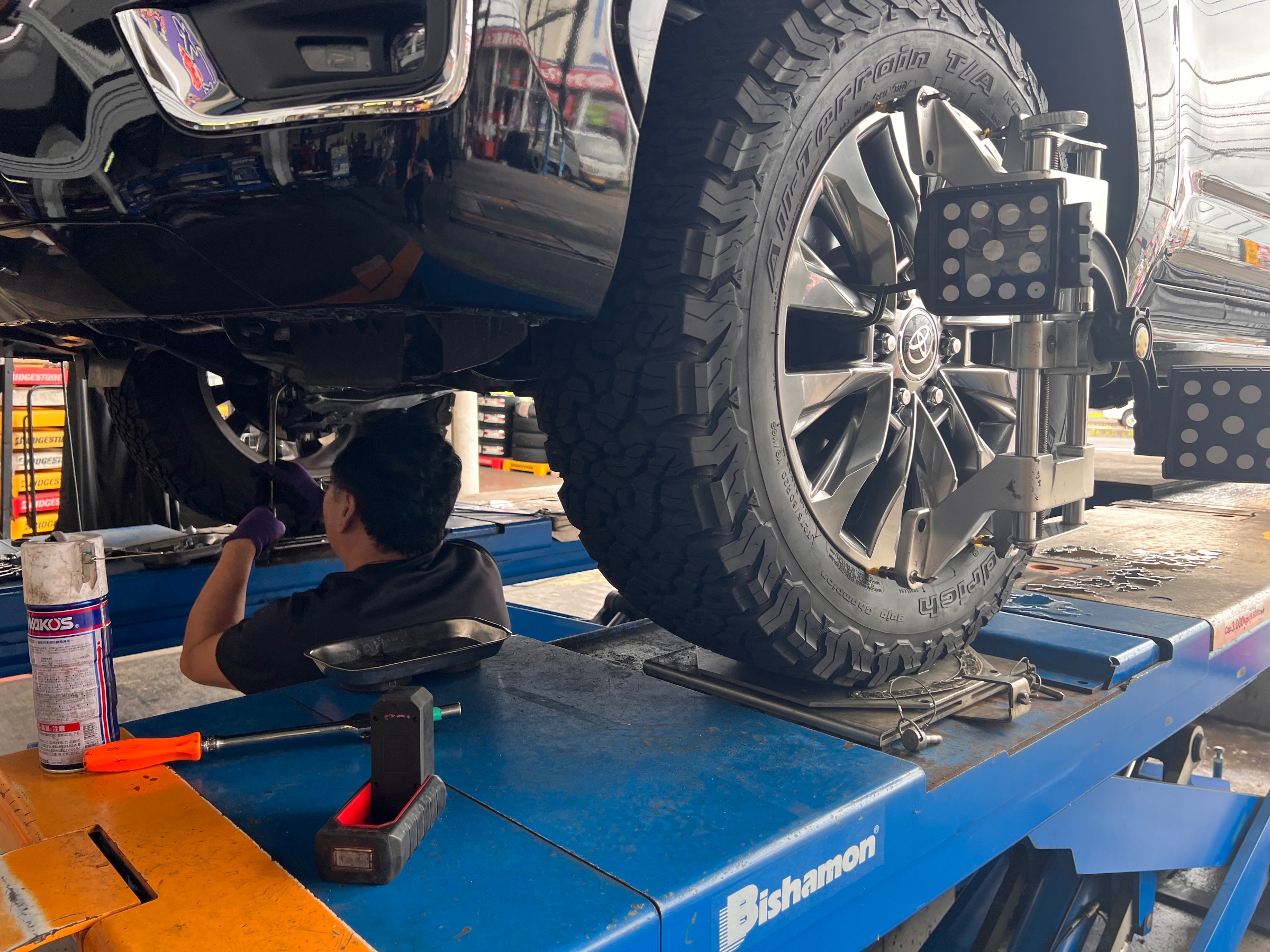 迫力あるスタイルと走破性の向上が魅力ですが、リフトアップ後に忘れてはいけないのがアライメント調整です。