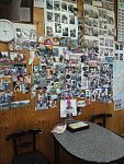 当店の壁一面写真展になっております。 自慢のキノコの写真、飼い犬の写真 お孫の写真です。