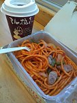 慎重な私が初体験。高速のサービスエリアにて♪ 少しお腹が空いて時間が無いので、珈琲のおともにスパゲッティを食べてみました。