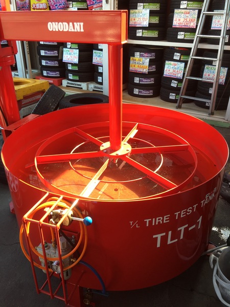 これは、水タンクです。空気を入れたホイル付のタイヤを沈めて