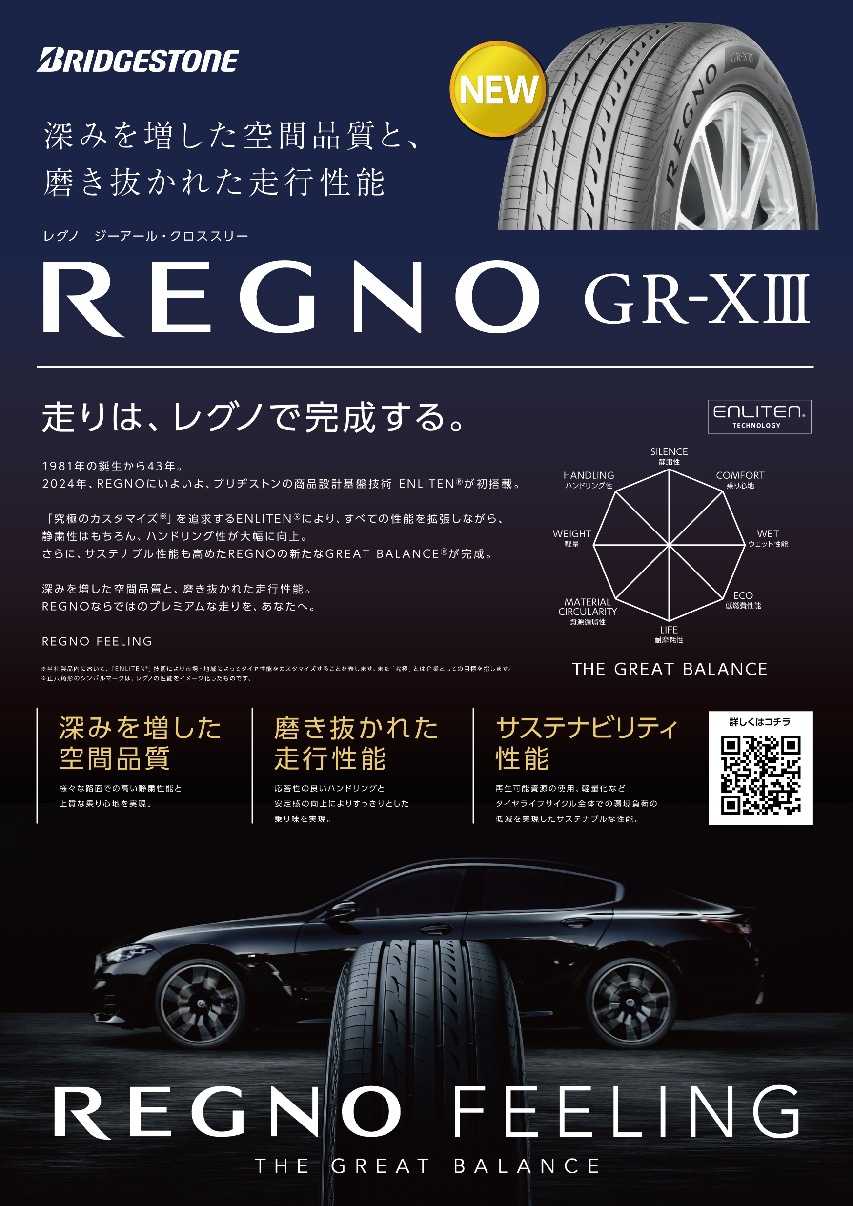 REGNOの特長でもある、静粛性(静かなタイヤ)