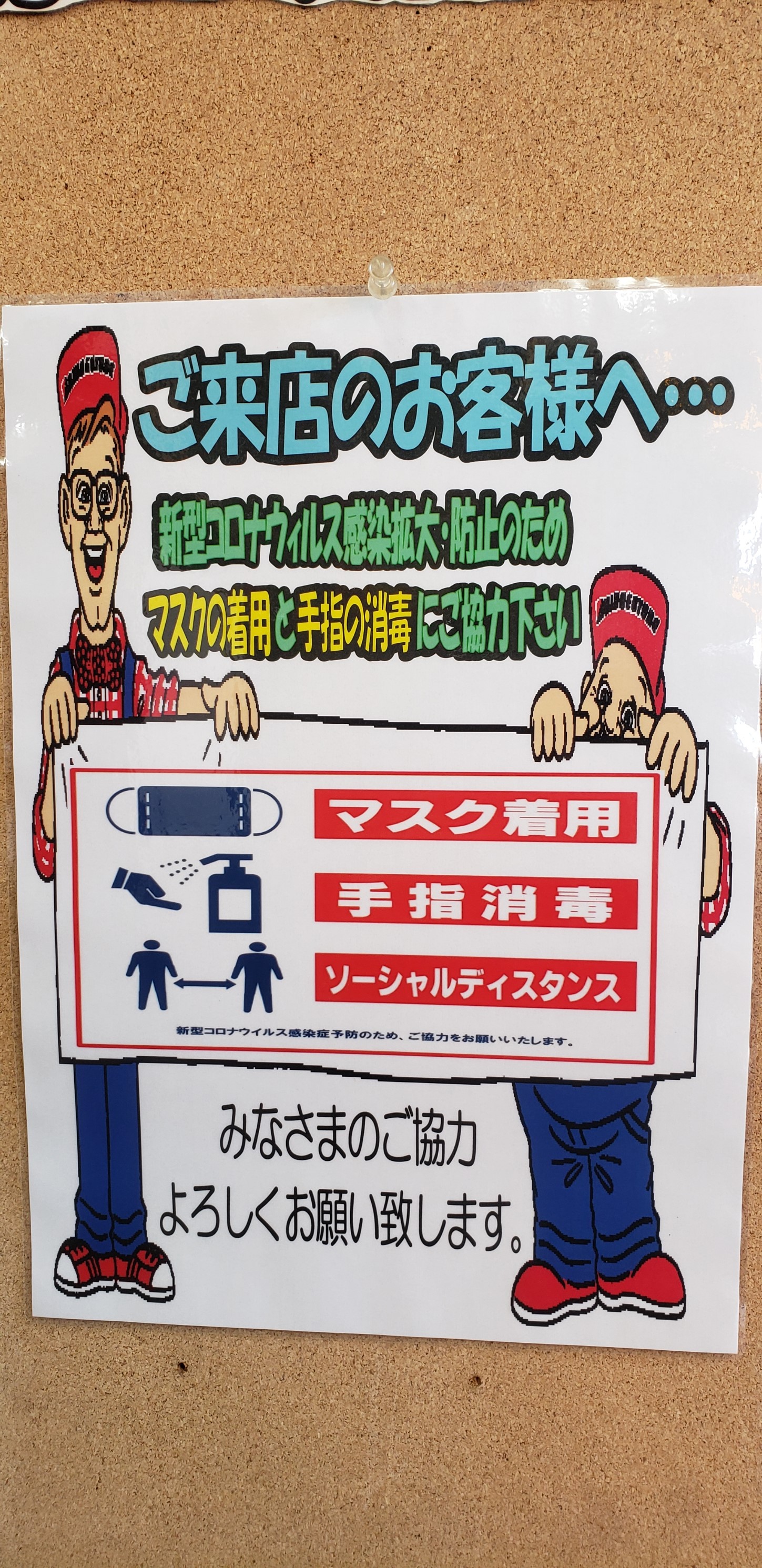 ご来店時のお願い 2020年10月26日 いつも当店をご利用頂き誠にありがとうございます。 新型コロナウィルス感染拡大・防止のため日頃から 皆様には、ご協力をお願いしておりますが、これからの 季節は、より一層ご来店の際のマスクの着用と手指の消毒を 皆様に今一度お願い申し上げます。