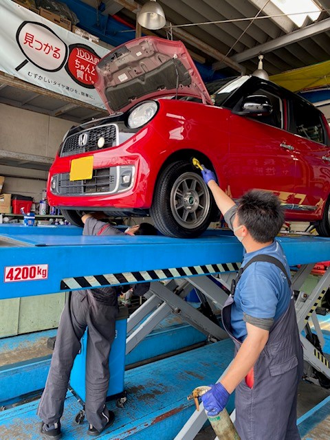 当店はタイヤ販売だけでは無く、基本メンテナンスや車検など多岐に