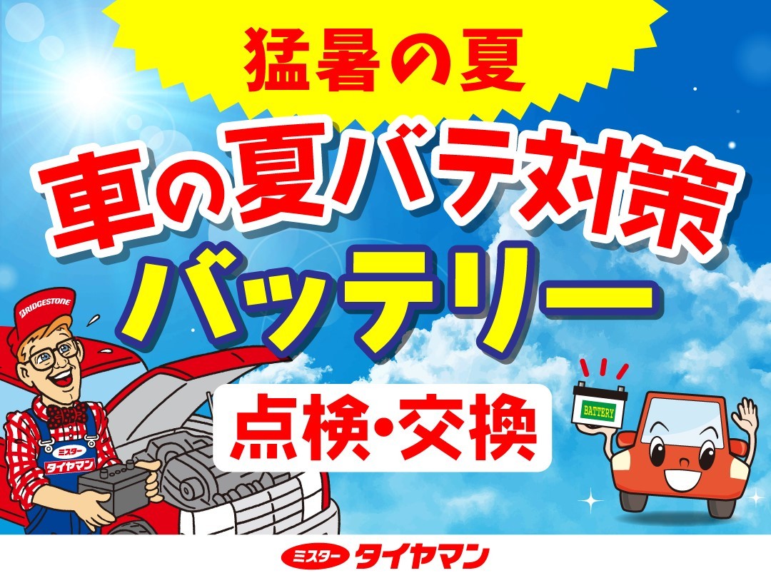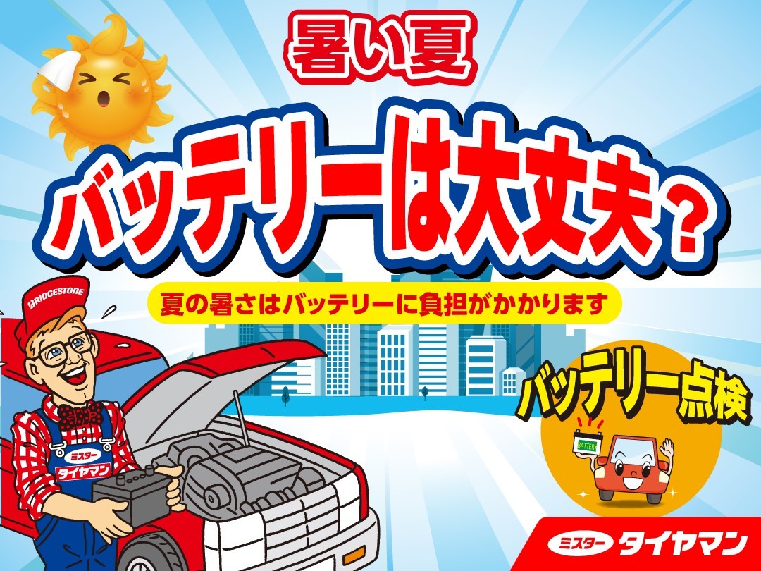 夏はお出かけや帰省で長距離運転が多くなり出先で突然バッテリーがあがってしまった!なんてことにならいように、ぜひ一度、バッテリーの点検をしてみて下さい!