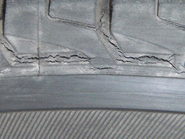 壊れかかったタイヤは、 部分的な膨らみを ともないます。