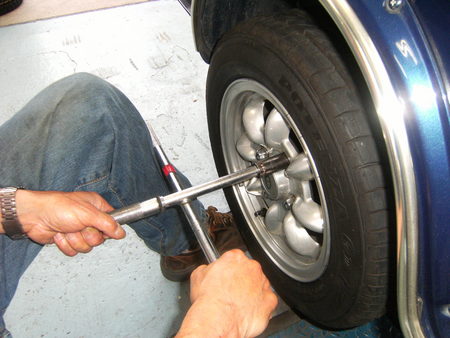 ●十字レンチを操作中、できれば 車輪を手で支えたい。