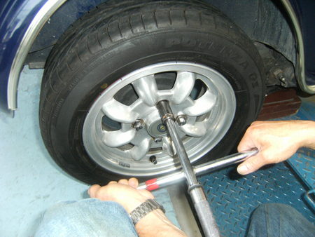 車輪の取付が、早く 正確に 出来ます。 また、車輪を手で支えながら作業可能です。
