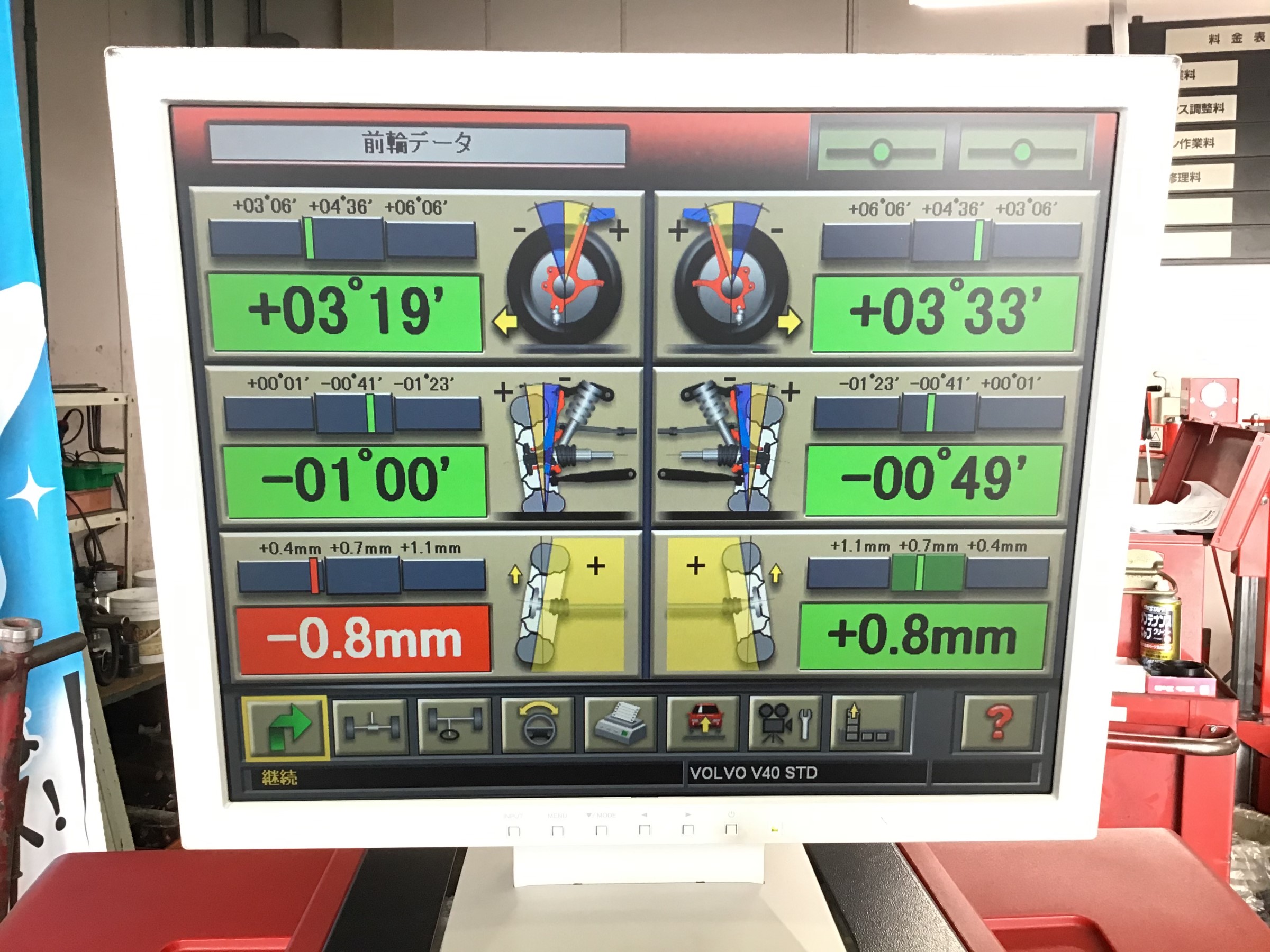 リアの左側と同じでフロントも左側が基準値に対してズレが出てますね~