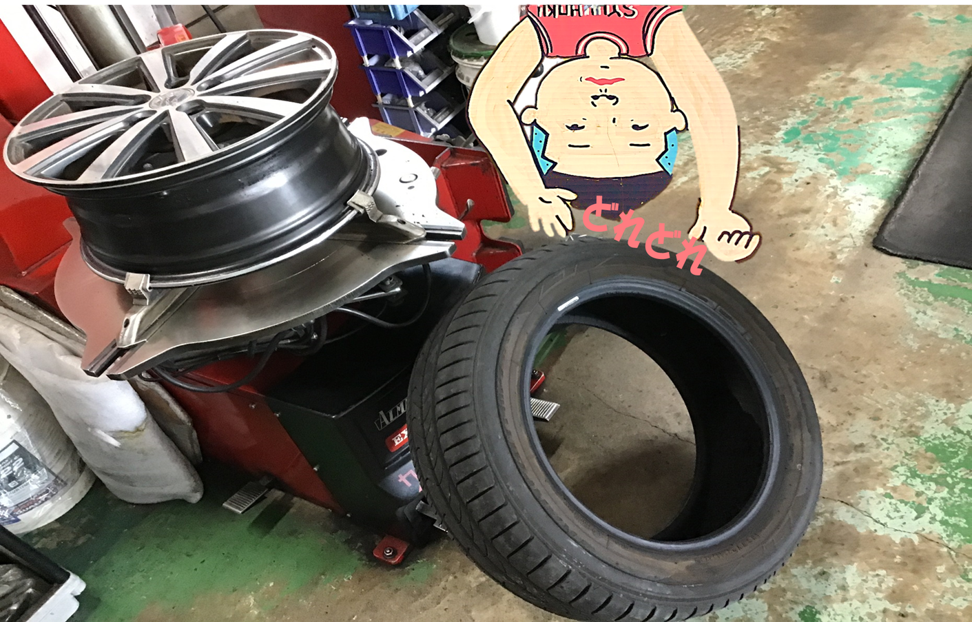 タイヤは、1本新品の方をご用意させて頂き交換作業を進めて行きます。