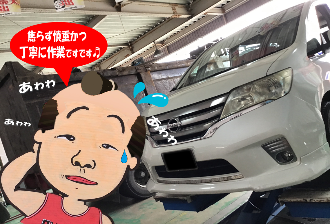 続きましては大型トレーラー台車の4本交換&レッカー車にて入庫のセレナです。