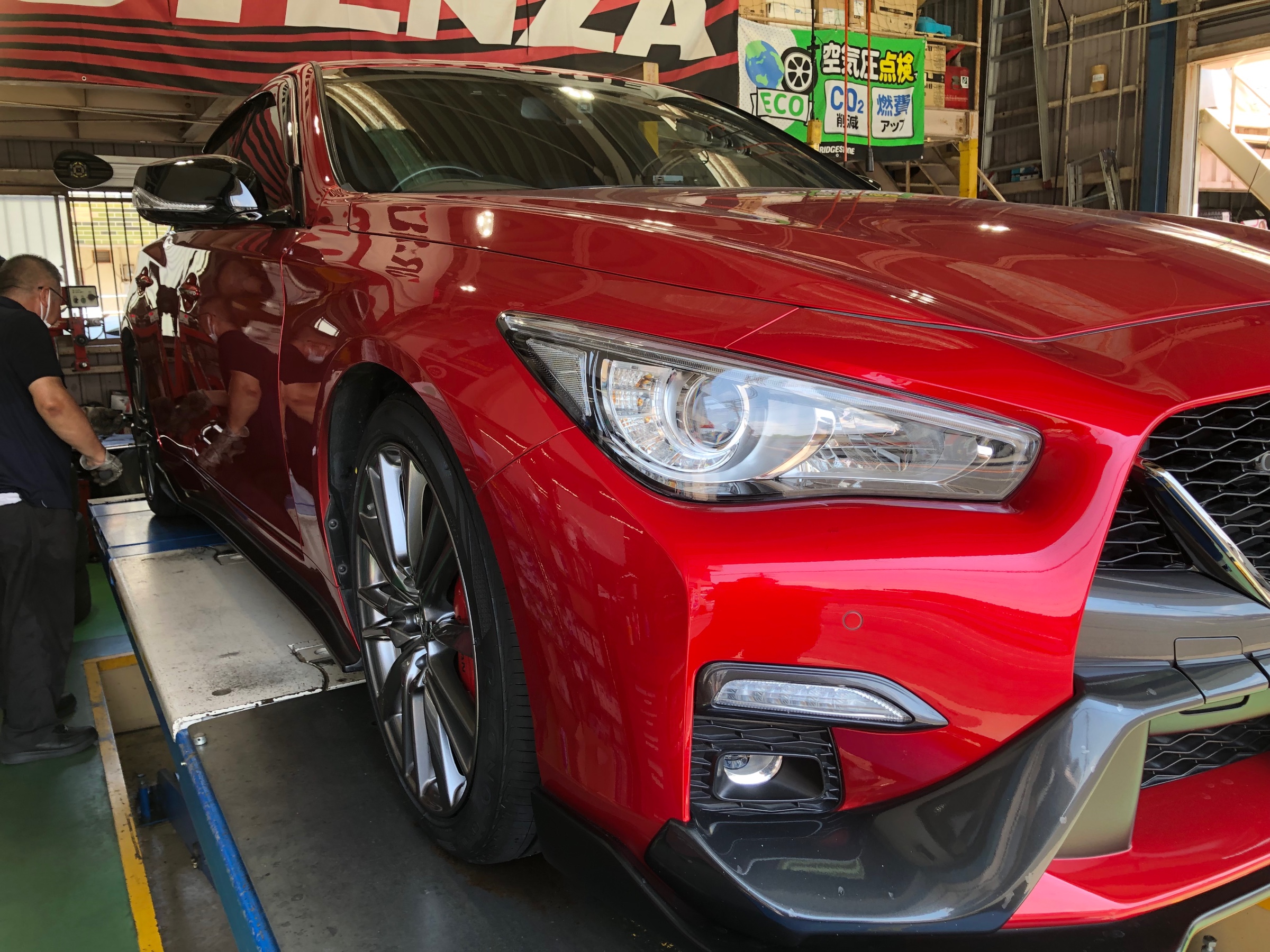 本日の作業は、日産スカイライン400Rのタイヤ交換をしました。
