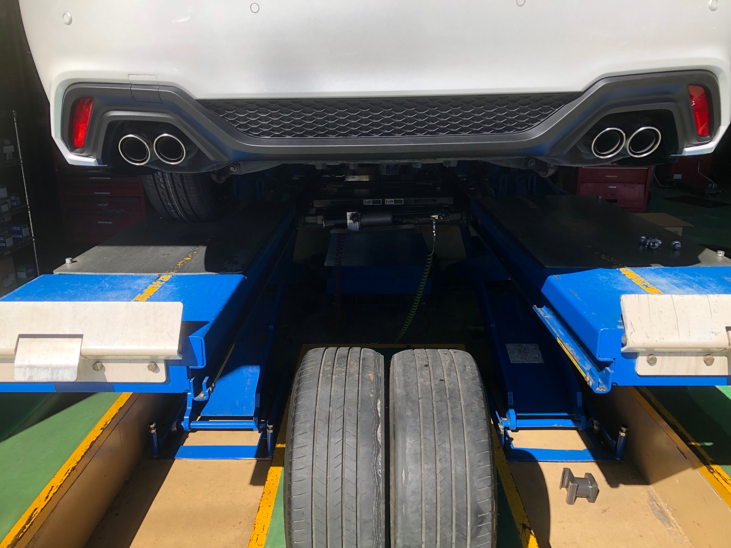 タイヤが内減りしていましたので新品タイヤに交換後アライメント調整させて頂きました。