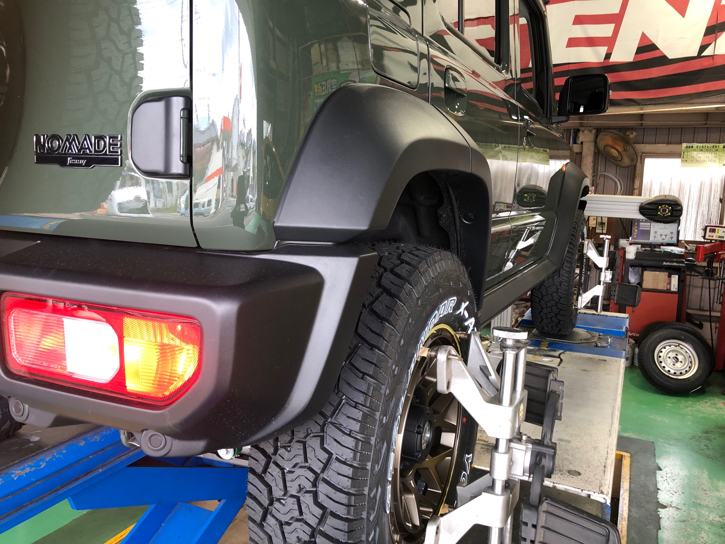 本日の作業は、スズキジムニーノマドのアライメント調整です。今回も基準値でしっかり調整させていただきました^_^