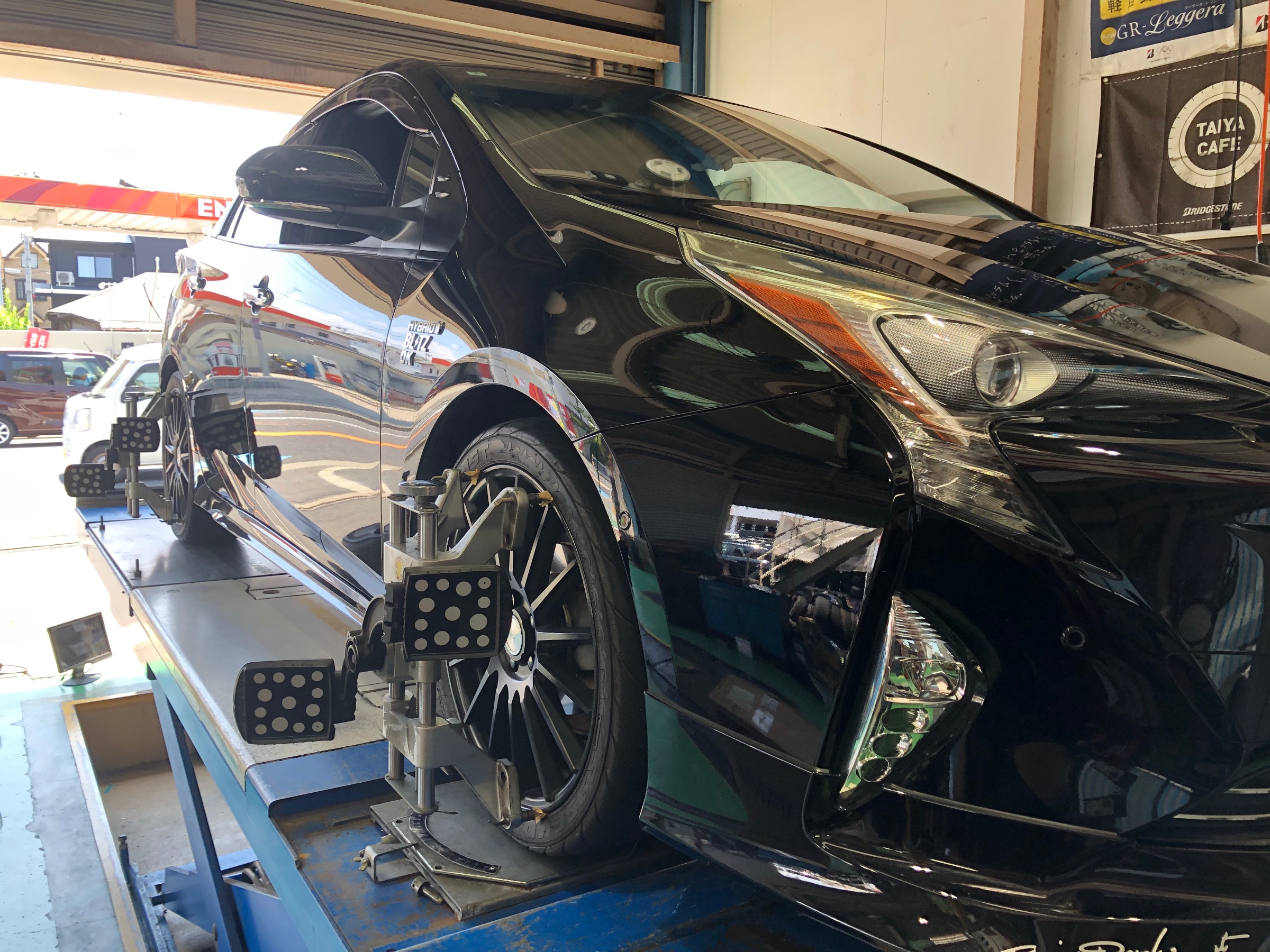 本日の作業はトヨタプリウスのアライメントをしました、足回りをノーマルに戻した為アライメント調整となりました^_^