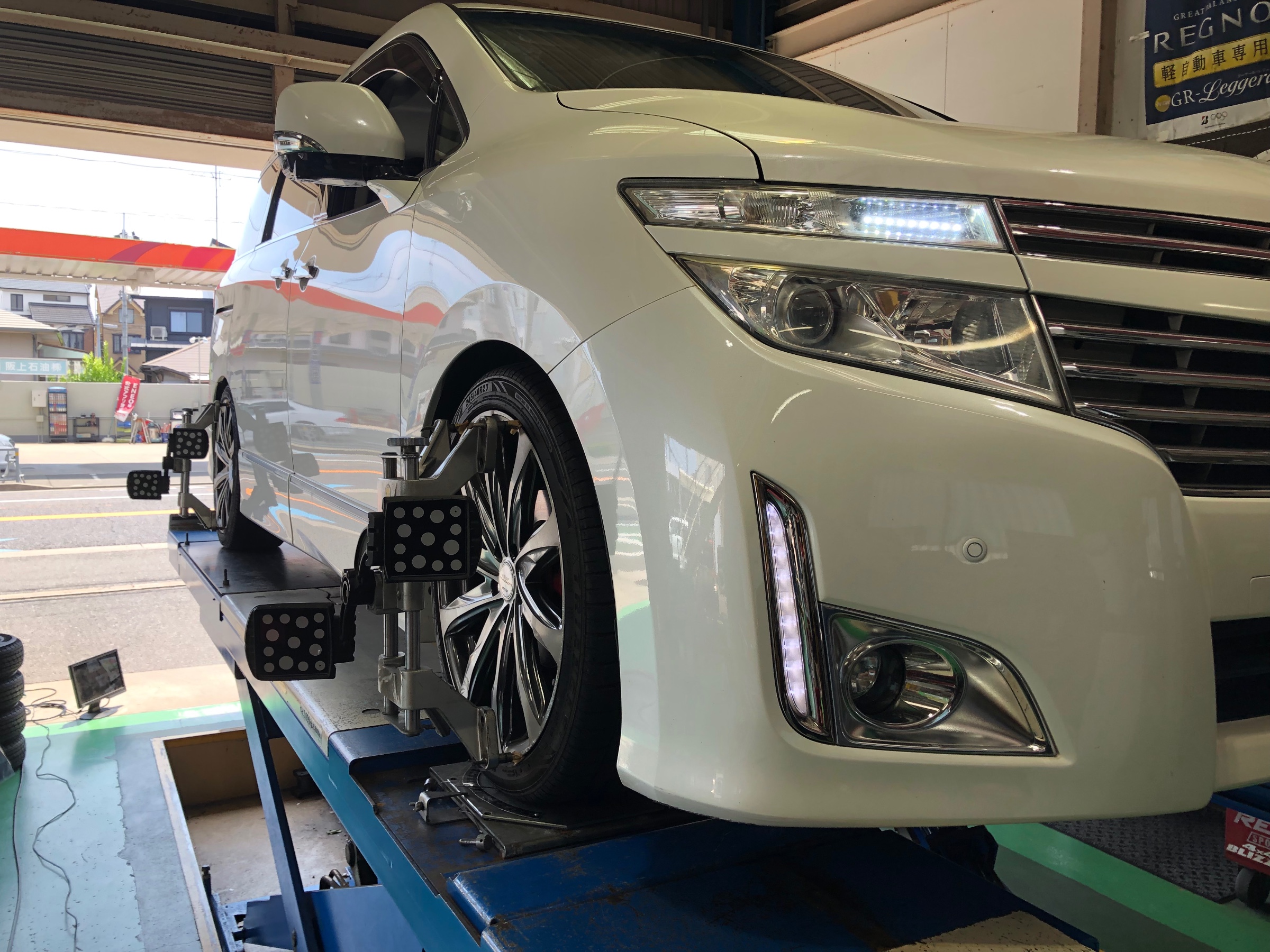 本日の作業は日産エルグランドE52のアライメント調整をしました。